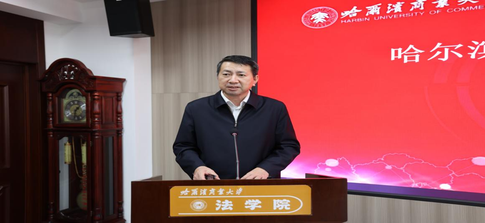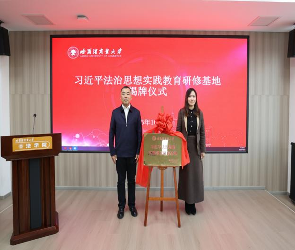 为深入学习贯彻习近平法治思想,推进法学理论与法治实践深度融合,10月22日下午,哈尔滨商业大学习近平法治思想实践教育研修基地揭牌仪式在法学院多功能厅举行。校党委书记赵广,党委副书记姜国峰,党委常委、副校长王福友出席仪式;学校相关职能部门负责人、法学院和马克思主义学院师生代表、各学院辅导员代表参加揭牌仪式。仪式由法学院院长高勇主持。