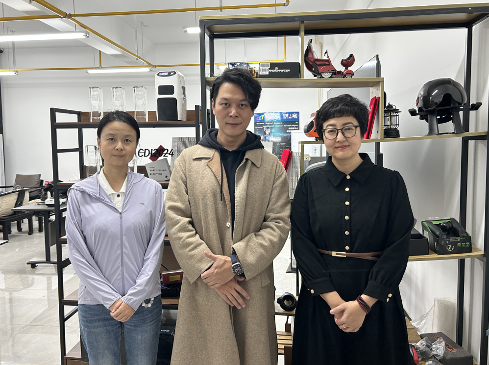 推动科艺融合势,共育时代擎旗人。为对接科技产业新趋势,团队赴湖北武汉走访总司科技有限公司与嗨湃科技有限公司。总司科技在智能硬件与人机交互领域的产品与方案,引发双方对用户体验、产品外观与科技融合的深入探讨,并推动项目实践基地建设。嗨湃科技以前沿的潮流品牌策划与数字营销实践,强调跨学科知识与创新思维在设计教育中的重要性,为人才培养拓宽视野、指明方向。