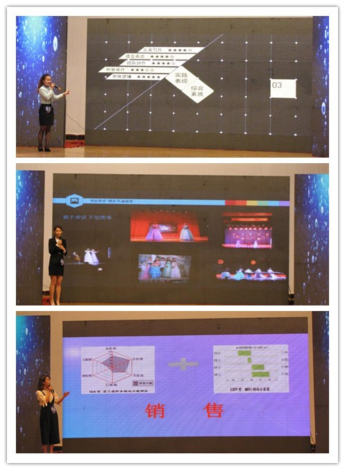决赛现场分为职场初印象、职场我最棒、职场新未来三个环节。参赛选手通过演讲、现场问答等形式,全方面的展现着自己。评委根据选手综合表现,亮灯以示肯定。最后,选手和评委双方互选,当场签定实习协议。