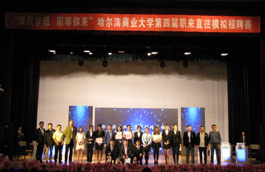 2016年5月26日17:00,由校团委主办、校学生会承办的第四届大学生“职来职往”模拟招聘会暨职场精英挑战赛于B区大礼堂落下帷幕。参与本次模拟招聘赛的企业及机构有:中国平安人寿保险股份有限公司、慧聚众成机构、中国太平财产险有限公司、江苏雪豹日化有限公司、菲沃斯文化传媒有限公司、深圳天洁生物科技有限公司、九植生物科技有限公司、皇明太阳能股份有限公司。校团委书记贾妮燕、校团委徐旭老师出席了本次活动。近600余名同学观看本次模拟职业招聘赛。