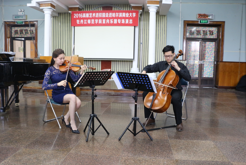 6月2日下午,“高雅艺术进校园”——牡丹江师范学院室内乐团哈尔滨商业大学专场演出在B区多功能厅圆满落幕。此次巡演活动是由教育厅主办的“高雅艺术进校园”系列活动之一。全校近百名师生欣赏了此次演出。