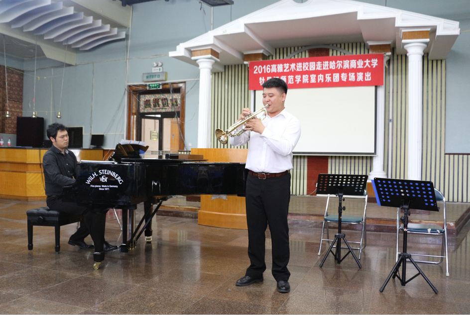 近年来,我省为响应国家教育部、文化部、财政部的号召,积极开展“高雅艺术进校园”系列活动,旨意在培养大学生良好的艺术修养,提高审美品味。本次“高雅艺术进校园”——哈尔滨商业大学专场活动,不仅丰富了我校的校园文化生活,也为商大学子们提供了一次走进艺术、欣赏艺术、学习艺术的机会,对学生综合素质的提升,审美情趣的培养发挥着独特的作用。