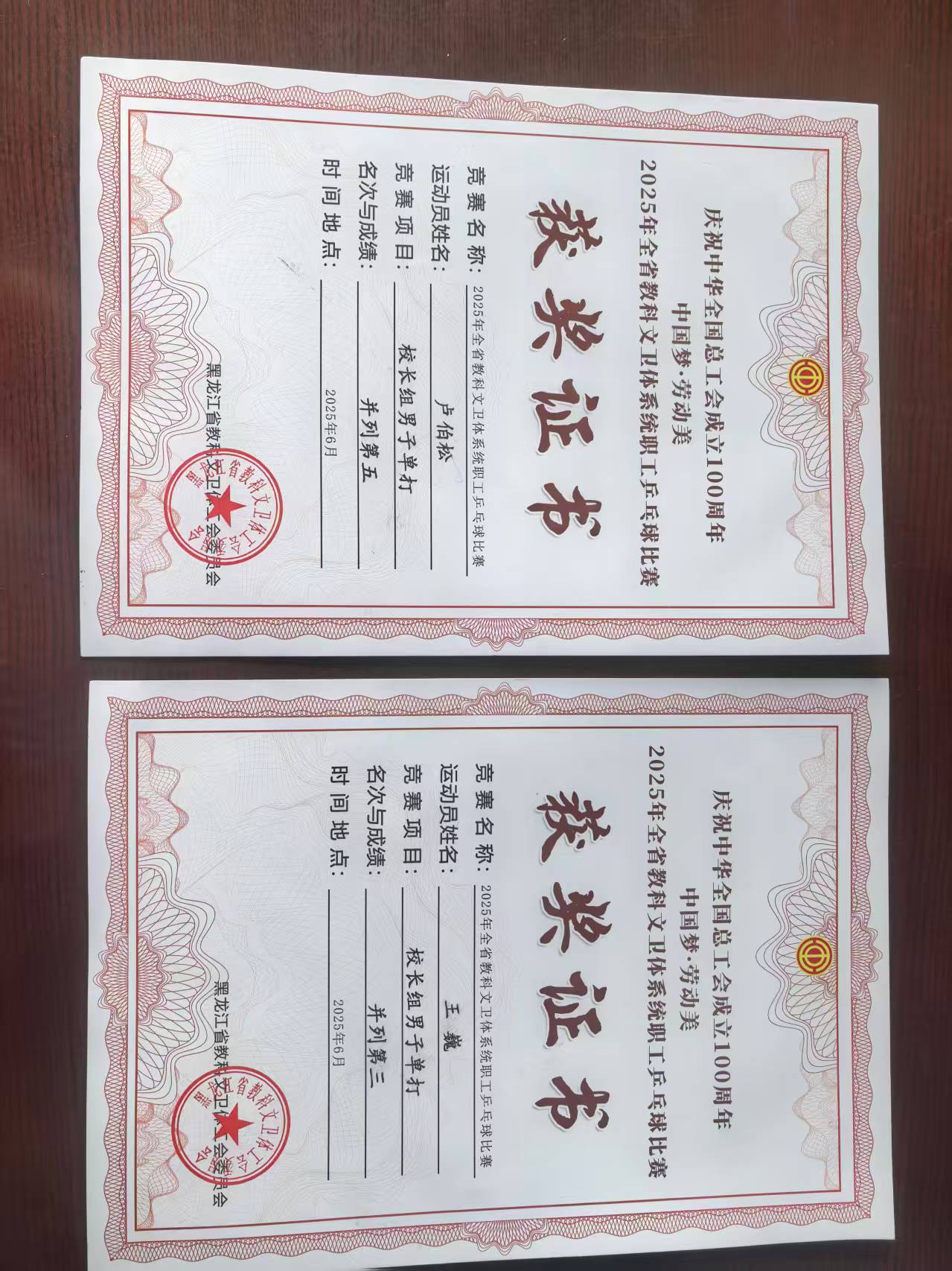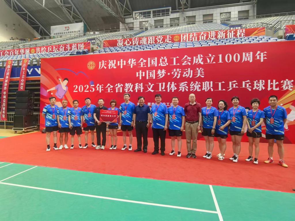 6月25日至27日,由省总工会主办、省教科文卫体工会承办的庆祝中华全国总工会成立100周年 “中国梦·劳动美” 2025年省教科文卫体系统职工乒乓球比赛在哈尔滨圆满落幕。比赛吸引了全省47家单位,共计500余名职工参与,比赛项目涵盖混合团体、男/女单打、混双以及校长组单打等多个项目,竞争异常激烈。