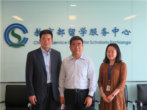 曾涛与教育部留学服务中心副主任车伟民(中)、国际合作处处长张海霞(右)