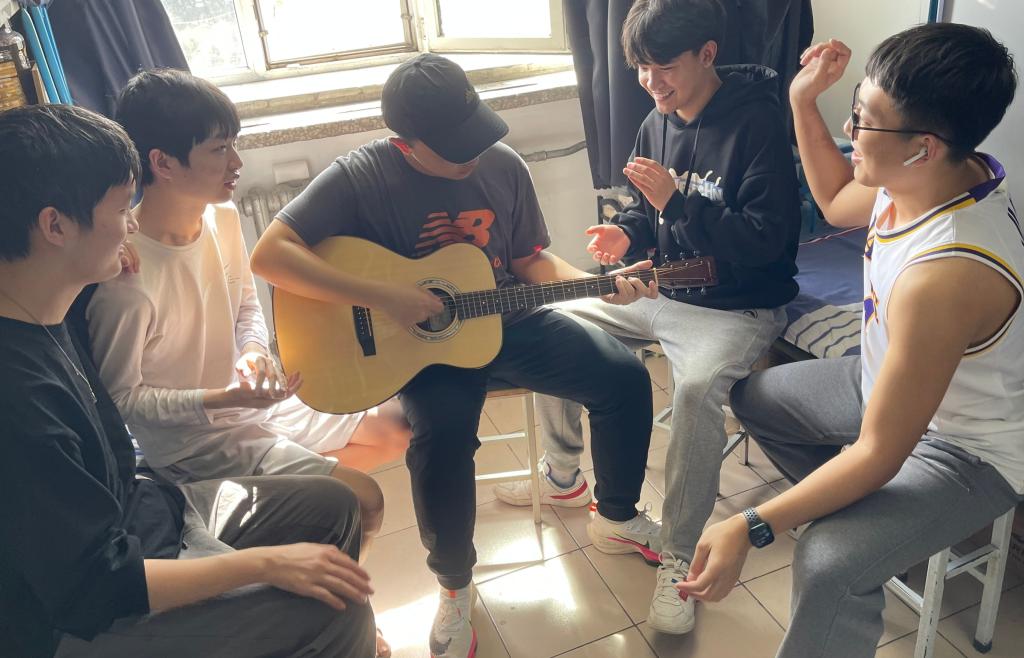 疫情期间,同学们在寝室除了正常上网课,还会丰富寝室文化生活,以积极乐观心态共同战疫。经济学院罗天宇同学以寝室窗户做“宣纸”,挥毫泼墨,“万众一心战疫情,同舟共济度时艰”几个大字,不仅向如今封闭在校的同学们传递了一份战胜疫情的信心,还被发布到网络平台受到广泛关注和赞扬。法学院1509寝室里不时传来几个小伙子歌声,他们说,“学校封闭管理以来,我们在宿舍每天上报基本情况,不耽误学习,认真上好网课,我们的状态都挺好的,希望疫情早日结束,共同迎接春暖花开”。