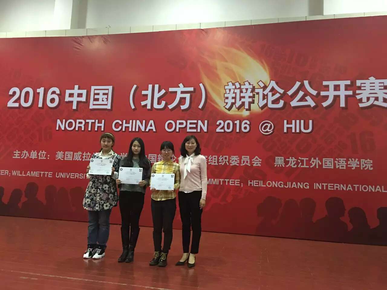 5月14日-15日,我校英语辩论队在威拉米特访问学者刘春阳副教授、温菲老师的带领下参加了由美国威拉姆特大学、中国辩论公开赛组织委员会主办,黑龙江外国语学院承办的中国北方辩论公开赛(North China Open)并取得佳绩,这也是我校英文辩论队多年积淀的硕果。来自东北三省17所高校的80余名参赛选手参加了此次比赛。我校共有5.5支队伍,11名选手参加了本次比赛。期中三名选手在本次比赛中脱颖而出,最终挺进决赛,与东北赛区最优秀辩手同台竞技,尽显商大风采。其中2014级外语学院康乃馨同学斩获冠军,刷新了我校参加英语辩论赛事以来的最佳成绩;2015级外语学院陈瑾扬和2015级英才学院张钰康获得季军,彰显小将风采。此外,我校多名同学获得三等奖的好成绩。英辩竞技体现了商大学子灵活机动、衷于思考的良好风貌,也使得商大英辩队的年轻血液再度沸腾。