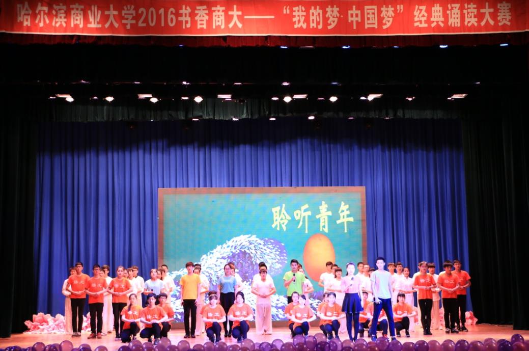 4月18日下午5时,由我校校团委主办的“书香商大——‘我的梦·中国梦’”经典朗诵大赛在B区礼堂隆重举行,有共18个学院400多位选手参加了比赛。本次比赛邀请了全国播音主持等级考试评委张艺、文艺学博士张宏、古代文学博士张弛等五位老师担任评委。