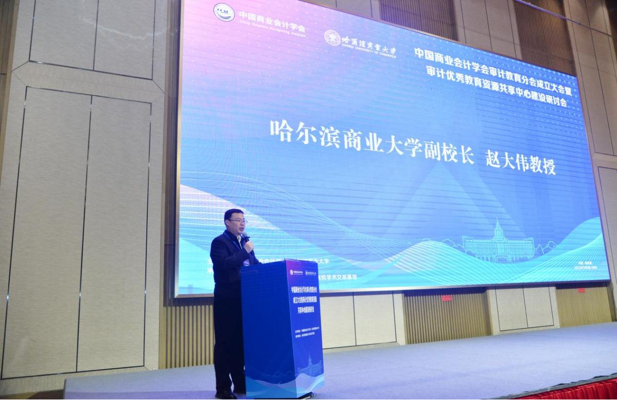 中国商业会计学会审计教育分会由我校会计学院牵头,联合国内15所院校发起,2025年11月正式批准设立,目前拥有30家理事单位,我校是分会会长单位。本次“中国商业会计学会审计教育分会成立大会暨审计优秀教育资源共享中心建设研讨会”由我校和中国商业会计学会主办,我校会计学院和黑龙江省数智财经与区域发展研究学术交流基地承办。中国商业会计学会执行副会长谢志华教授、孙宝厚博士,副会长李凤雏;哈尔滨商业大学党委副书记、校长李景义教授,党委常委、副校长赵大伟教授等出席会议。赵大伟主持会议。