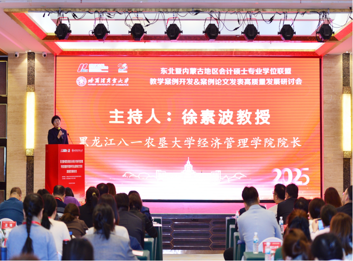 11月30日,由全国会计专业学位研究生教育指导委员会(以下简称会计教指委)指导、哈尔滨商业大学会计学院主办的“东北暨内蒙古地区会计硕士专业学位联盟教学案例开发&案例论文发表高质量发展研讨会(2025)”在哈尔滨举办。哈尔滨商业大学党委常委、副校长赵大伟,会计教指委秘书处主任苏畅出席开幕式并致辞。北京航空航天大学经济管理学院博士生导师、北航深圳研究院副院长邓路,《财会通讯》杂志社执行主编熊年春,东北农业大学现代农业案例中心执行主任、经济管理学院案例研发中心主任、MPAcc教育中心主任王积田,以及来自东北财经大学、东北大学、内蒙古大学、东北师范大学、哈尔滨工业大学、哈尔滨商业大学、辽宁大学、吉林财经大学、内蒙古财经大学等东北及内蒙古地区38家100余位具有会计硕士专业学位授权点的领导、专业负责人和教师出席研讨会,共研教学案例开发和发表精品论文,赋能区域会计硕士联盟高质量发展。哈尔滨商业大学会计学院院长梁运吉教授主持会议开幕式。