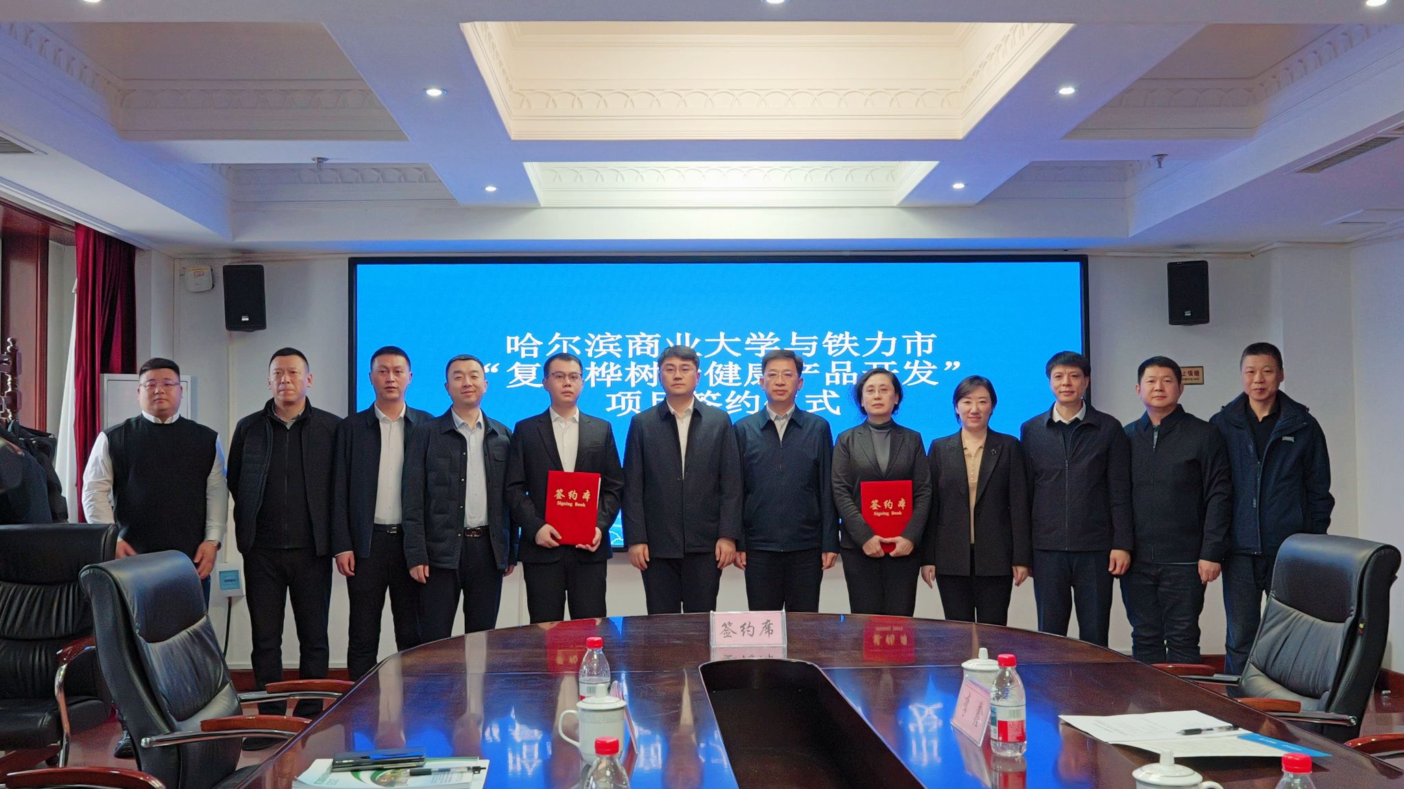寇胜利对王浩市长一行的到来表示欢迎,对铁力市给予我校相关工作的支持表示感谢。他指出,今年8月19日,哈尔滨商业大学与铁力市人民政府、伊春森工铁力林业局有限责任公司进行了校市、校企战略合作签约。10月28日,赵广福副市长一行专程到访我校药学院开展成果对接座谈,进一步推动铁力市特色中草药资源的系列健康产品创新开发与产业化项目合作协议落地。为深入学习贯彻党的二十届四中全会精神,推动技术创新与产业创新深度融合,此次“复合桦树汁健康产品开发”项目的签约,是学校针对铁力市桦树汁开展产品研发的第一步,后续双方将通过深入研究,实现从“初级原料”到“高值化产品”的目标,培育出具有国内影响力的桦树汁精深加工产品,实现成果落地转化、就地转化,为铁力市经济发展作出商大贡献。