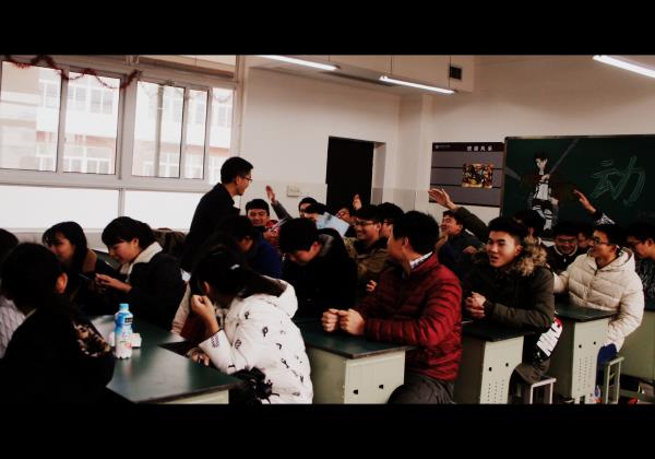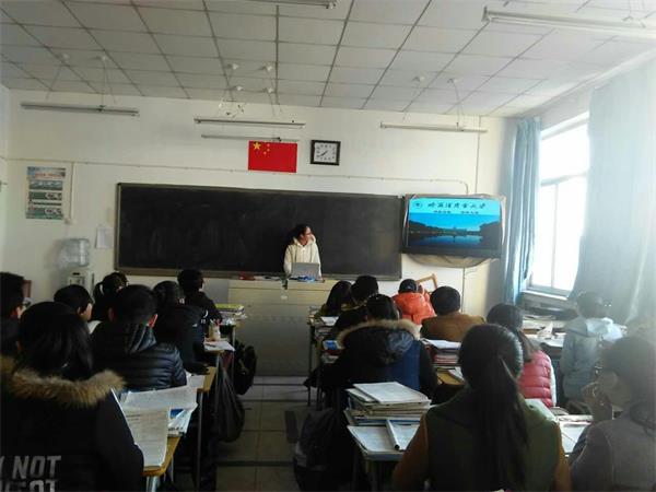 志愿者在山东省牟平一中演示招生宣传PPT