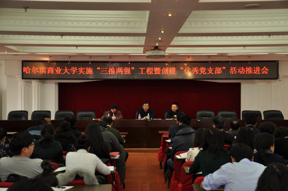 按照学校党委的工作安排,我校于2016年3月9日下午召开了“三推两强”工程暨创建“优秀党支部”活动推进会。各党总支书记、副书记、党支部书记和辅导员参加了会议。校党委常委、党委组织部部长刘吉昌同志主持会议,党委组织员办公室主任、组织部副部长袁涛同志对“三推两强”工程暨创建“优秀党支部”活动推进工作进行了部署,党委副书记李秉治同志到会并就上述事宜作了重要讲话。