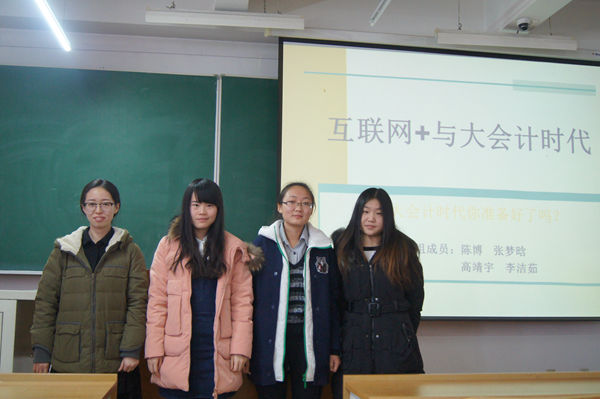 本期论坛以一个短片开场,该短片讲述了大数据、云计算迅猛发展的时代背景给各行各业带来的影响,进而引出主题“互联网+与大会计时代”。同学们依次对互联网+的概念,互联网+带来的机遇和挑战,互联网+在会计中的应用与经验,互联网+之管理会计进行了详细阐述,生动的讲解得到了同学们的阵阵掌声。随后,该组同学展示了短剧“中国好会计”,该短剧紧扣主题,形式新颖,获得了同学的一致好评。