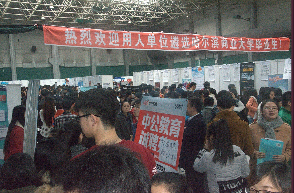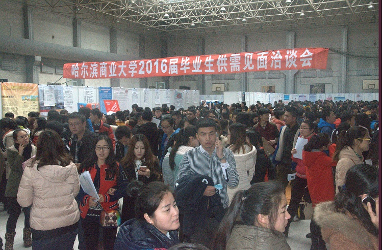 哈尔滨商业大学2016届毕业生供需见面洽谈会于11月14日在南校区体育馆成功举办,就业指导中心筛选了325家单位来我校招贤纳才,提供就业岗位9517个,我校和全省其他高校近万名毕业生参加了招聘活动。 中国水利水电第一工程局有限公司、中航工业哈尔滨轴承有限公司、哈尔滨轨道交通装备有限责任公司、中铁二十二局哈建公司、航天科技控股集团股份有限公司、中国中车齐齐哈尔轨道交通装备有限责任公司、中粮生化能源(龙江)有限公司、齐齐哈尔二机床(集团)有限责任公司、九三集团、山东魏桥铝电有限公司、上海迪士尼度假区、青岛啤酒股份有限公司、中信建设证券股份有限公司、大连万达集团、浙江报喜鸟服饰股份有限公司、烟台荣昌制药股份有限公司、内蒙古伊利集团、葵花药业集团股份有限公司、黑龙江飞鹤乳业有限公司等国企、事业单位、知名企业到会招贤纳士。