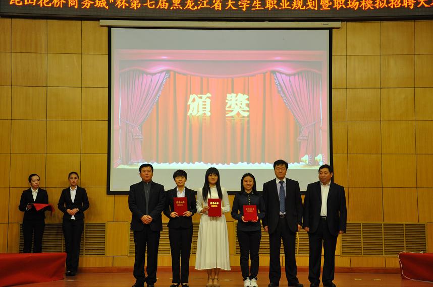 由黑龙江省教育厅主办、我校承办的第七届黑龙江省大学生职业规划暨职场模拟招聘大赛省级决赛及颁奖仪式10月17日在我校举行,校党委副书记杨殿军教授、省大中专学校毕业生就业指导中心副主任郭承哲、江苏昆山花桥组织人事局局长沈仁龙出席了颁奖仪式并致辞。