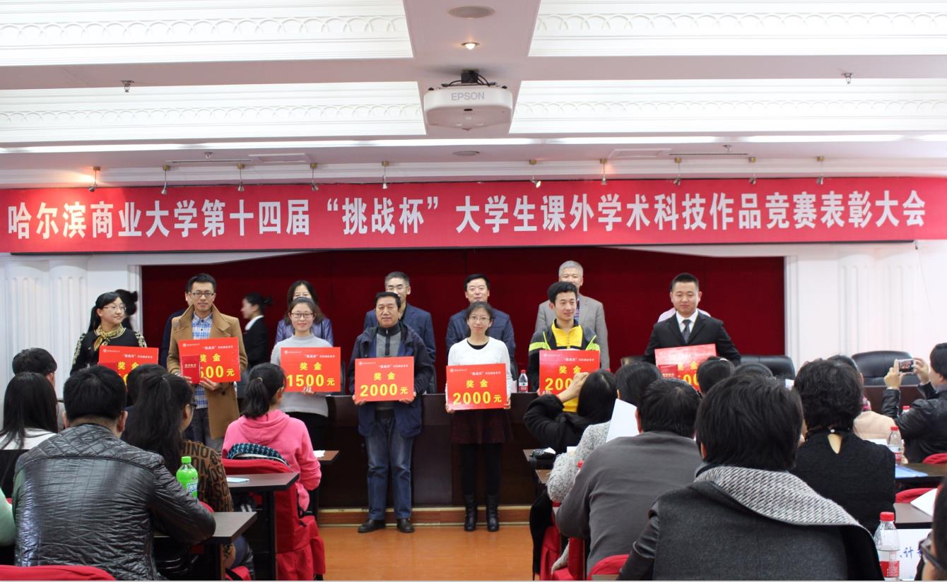 近年来,立足于引领、鼓励学生创新创业活动,在学校的高度重视、校领导的大力支持、相关职能部门的积极配合下,校团委以“五四”科技文化节为依托,以“挑战杯”竞赛为龙头大力推进学生创新创业,成立了由校领导牵头、涵盖校团委、教务处、科研处、人事处、学生处、实践教学管理中心及各学院主要领导的“挑战杯”大学生课外科技创新活动领导小组,出台了《哈尔滨商业大学“挑战杯”大学生课外科技创新活动管理与奖励办法》,从组织、人员、经费、政策、奖励等层面给予赛事全方位的助力与保障。赛事影响力、覆盖面、规范性得到了极大的提升。在“挑战杯”省赛、国赛中成绩斐然,屡创新高。