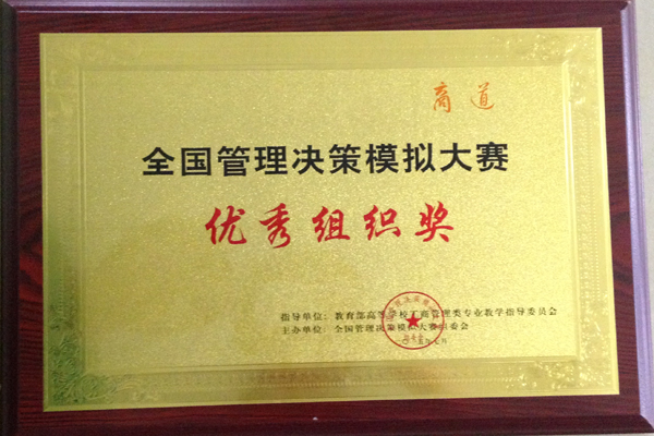 在此次比赛准备过程中,在我校各级领导高度重视下,实践教学管理中心指导下,校大学生创新创业联盟精心组织,为参赛学生创造了优越的训练环境。参赛学生投入了极大的兴趣和热情,经过数月的艰苦训练,终于在比赛中脱颖而出,凭借着出色的企业模拟运营成绩,获得了一等奖,为我校争得了荣誉。同时为表彰我校多年来对此项赛事的精心组织,我校被组委会授予“优秀组织奖”荣誉称号。