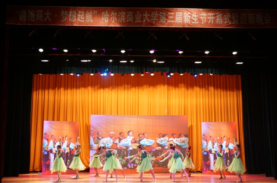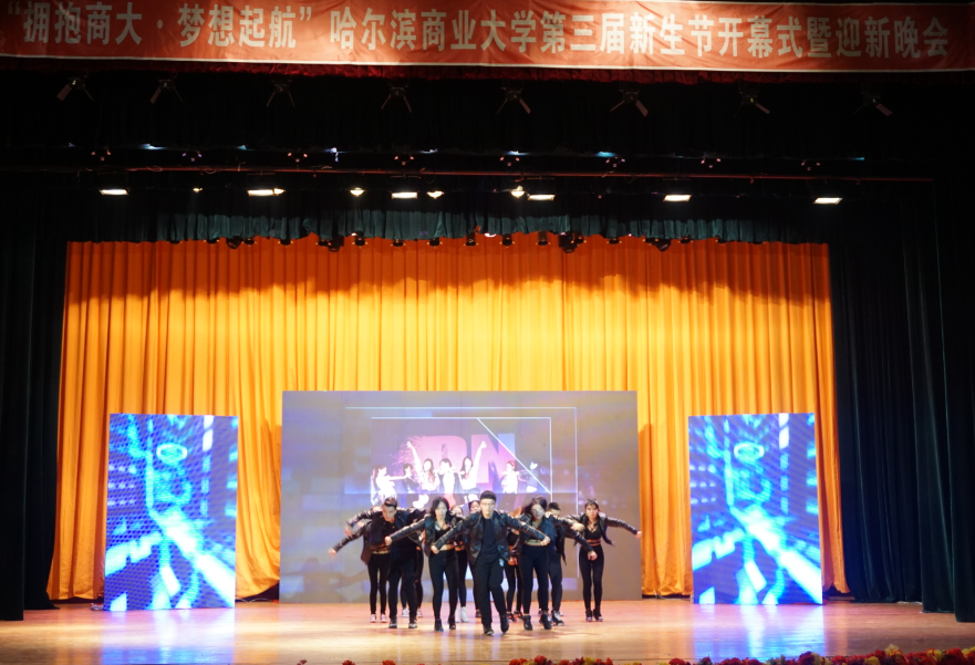 秋华满堂,喜迎新生,拥抱商大,梦想启航。为迎接新生,我校举办哈尔滨商业大学第三届新生节开幕式暨迎新晚会,本次晚会在我校B区大礼堂巡演两天,共演出四场,让现场4000余名新生及军训教官感受到了商大的如火热情和温暖关怀。