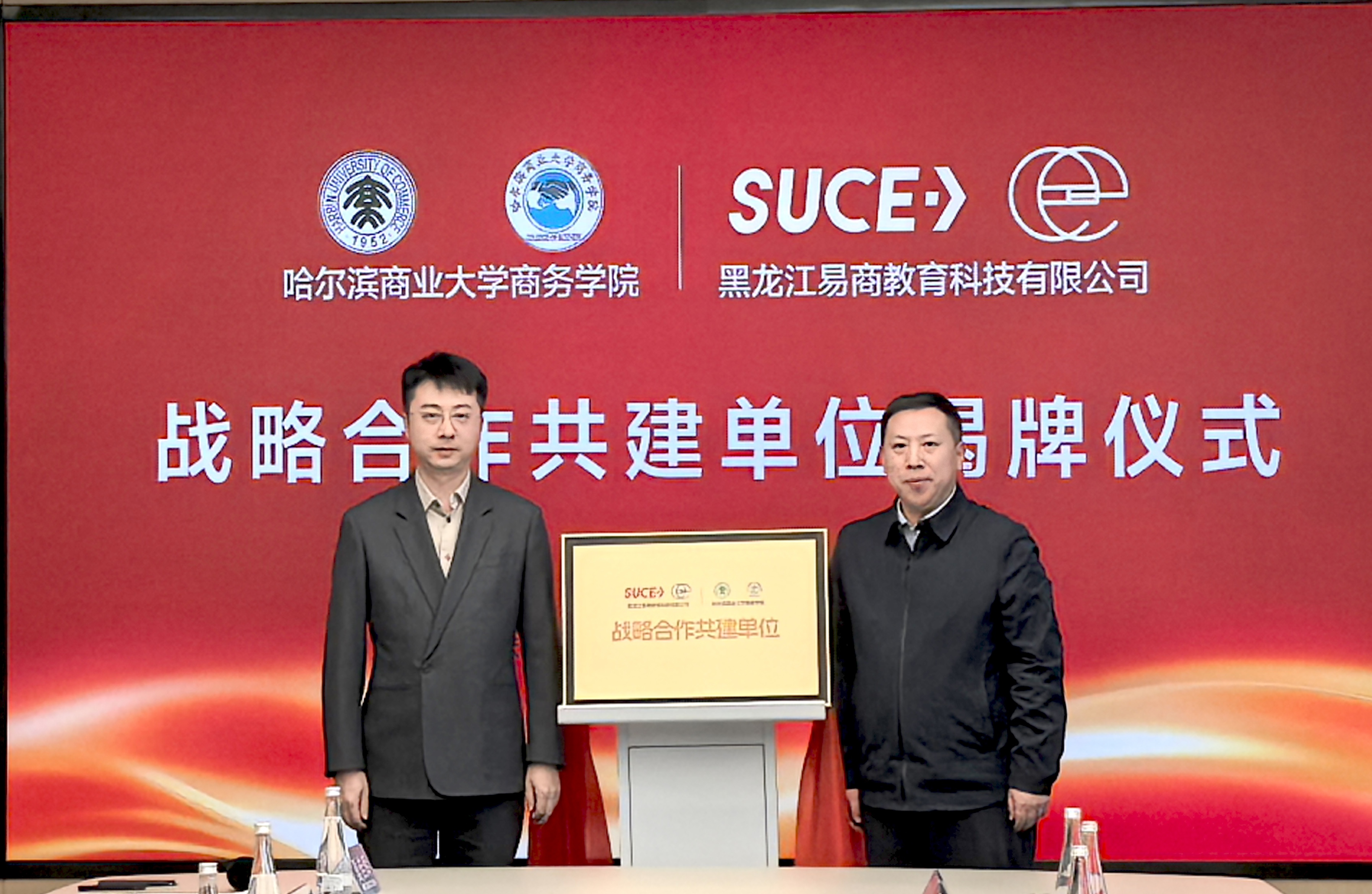 为进一步深化校企合作,共育商科人才,搭建高校与企业资源共享、优势互补的合作平台,12月26日,商务学院与黑龙江易商教育科技有限公司举行校企战略合作暨共建实习实训基地揭牌签约仪式。我校党委常委、副校长修国英,上海胜营科技(集团)有限公司董事长王仁刚,黑龙江易商教育科技有限公司总经理刘广耀出席仪式。我校商务学院党委书记赵莉,党委副书记、院长易加斌,各教研室主任、教师代表;黑龙江易商教育科技有限公司相关部门负责人参加仪式。