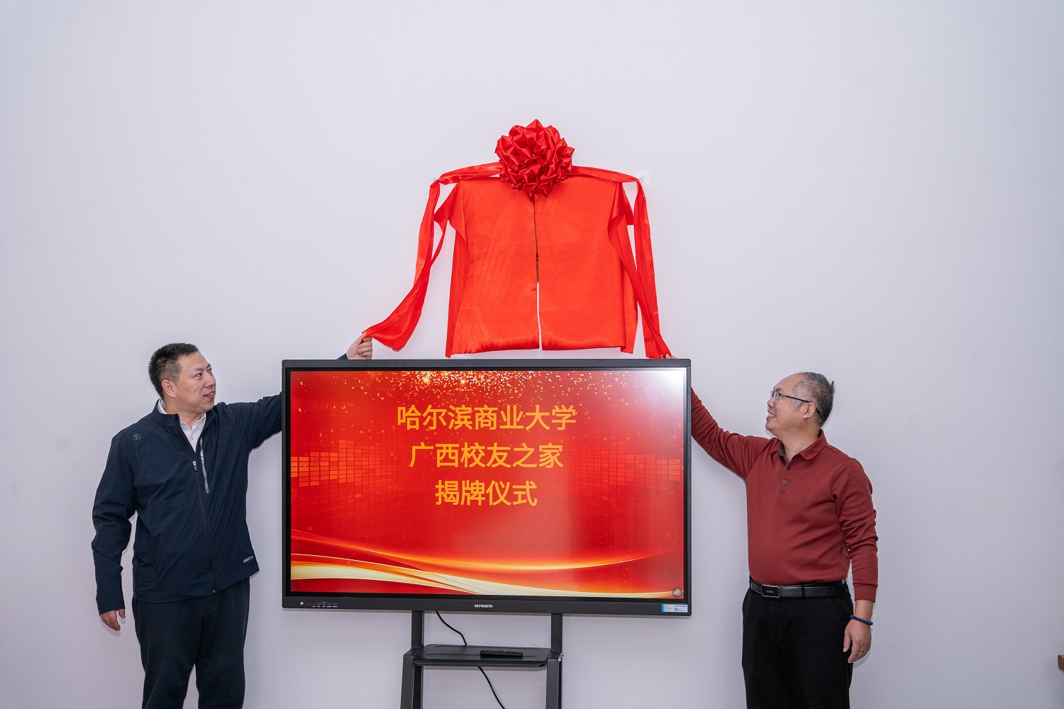 修国英为“广西校友之家”揭牌。广西校友之家的成立不仅是广西校友工作的一座里程碑,更是在南疆热土上为广大校友们筑起的一座精神家园与联结港湾。