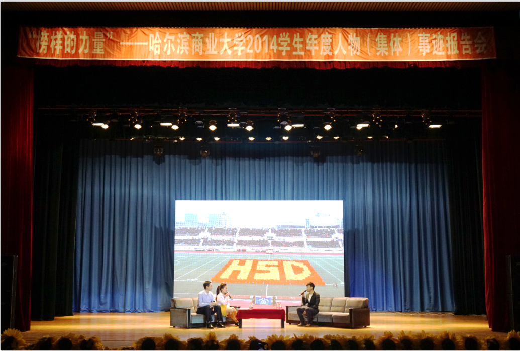 报告会上,校团委从我校14年“一二九”年度学生人物评选表彰中涌现出的学生典型中选取了在自主创业、执着追求、勤奋学习、传承美德、专业实践五个方面的典型人物及集体作为受访对象,包括公益创业典型——通过立体珠绣材料包这一公益创业项目,收到省内多家媒体的关注在社会引起一定反响的佳恒立体珠绣帮扶计划团队;勤奋学习的典型——以3年93.68分的平均分成功推免哈尔滨工业大学深圳研究生院研究生的刘红涛;文艺之星——我校2014年校运动会大型团体操《震撼商大》的策划者关剑;传承美德典型——我校原创校园励志话剧,黑龙江省典型教育的新载体《春天的礼物》剧组。专业实践典型——恪守“助人自助”的专业理念,投身于志愿服务的公益活动中的2012级法学院社会工作一班团队,并邀请轻工学院任婵媛老师以及她所带领的赴美寒假社会实践团队作为特邀嘉宾,为学生讲述美国教育以及美国文化的特点。报告会充分展现了学生榜样们奋发向上的青春风貌、感人至深的先进事迹、不断进取、勇往直前的可贵品质。