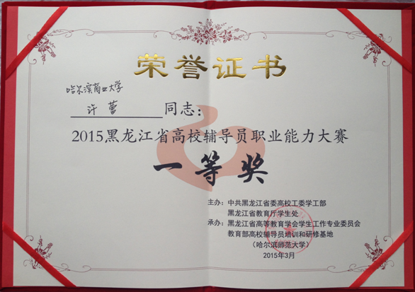 为深入贯彻党的十八大和十八届三中、四中全会精神,落实立德树人根本任务,进一步提高高校辅导员职业能力和专业素养,全面提升辅导员队伍的整体素质,省委高校工委、省教育厅于2015年3月在哈尔滨师范大学举行2015年全省高校辅导员职业能力大赛。经过激烈的角逐,我校能源与建筑工程学院辅导员许蕾老师喜获全省一等奖,并将代表黑龙江省参加下一层次比赛。