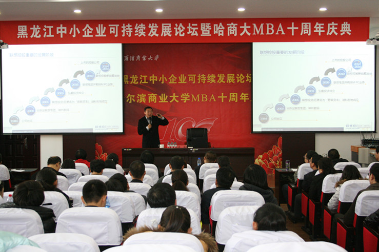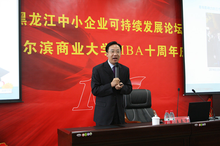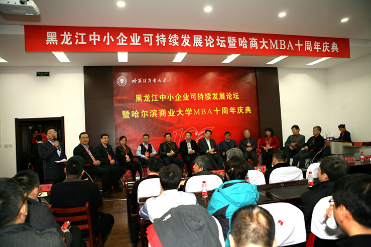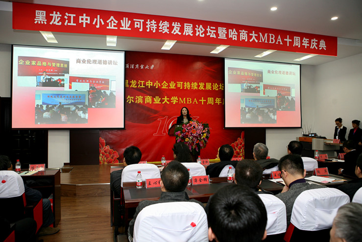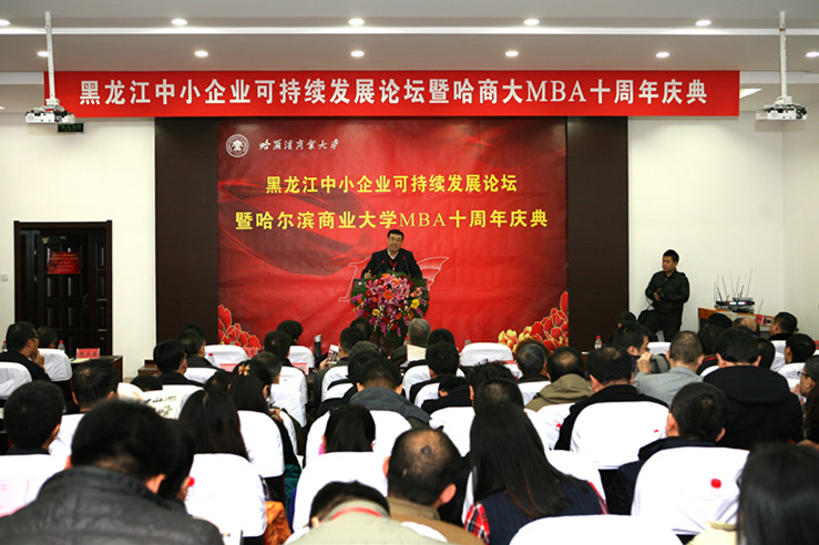 11月30日,黑龙江中小企业可持续发展论坛暨哈尔滨商业大学MBA十周年庆典在哈商大南校区主楼408报告厅隆重举行,来自企业界、学术界、政府界和媒体界的各位嘉宾以及我校MBA、MPA校友们济济一堂,共同见证了哈商大MBA的卓越成绩。庆典由MBA MPA教育中心资深顾问沈云岗教授主持。
