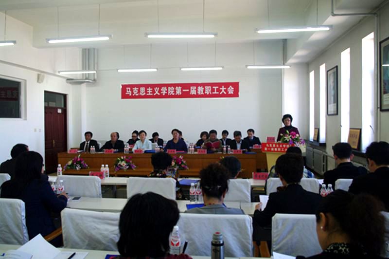 第一届教职工大会听取、审议了院长于景洋同志代表学院作的《凝心聚力 开拓进取 全面提升思想政治理论课的教育教学水平》的工作报告;通过了《马克思主义学院第一届教职工大会关于学院工作报告的决议》、《马克思主义学院第一届教职工大会关于学院工作报告的决议》,会议完成了确定的各项任务,取得了圆满的成功。