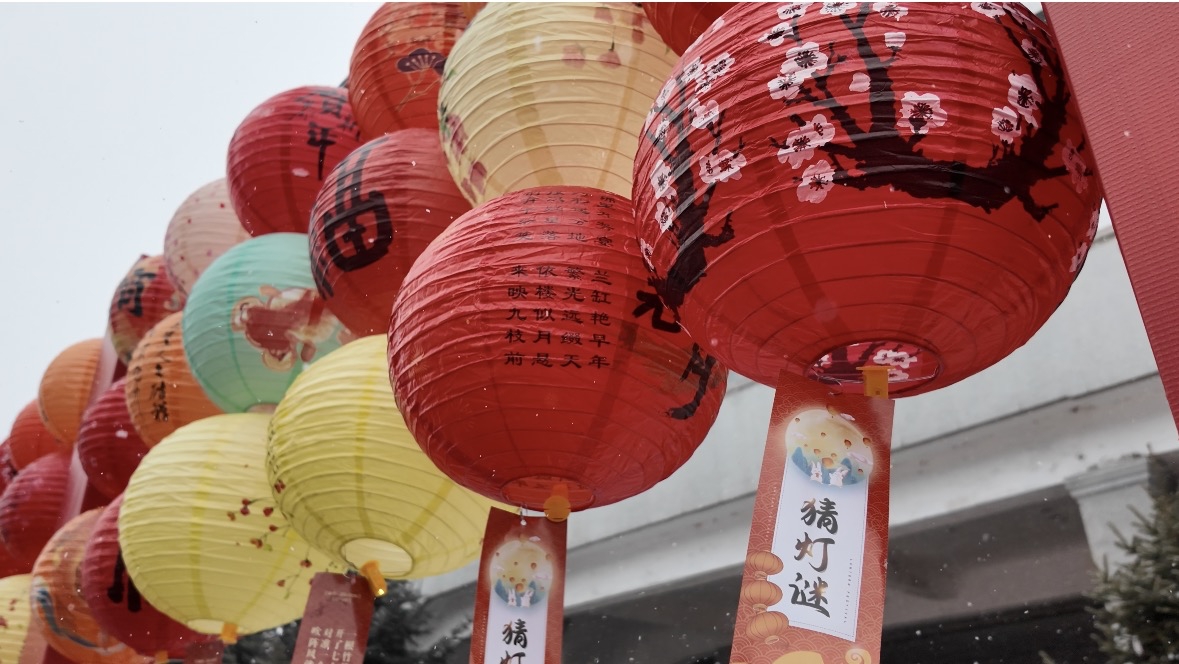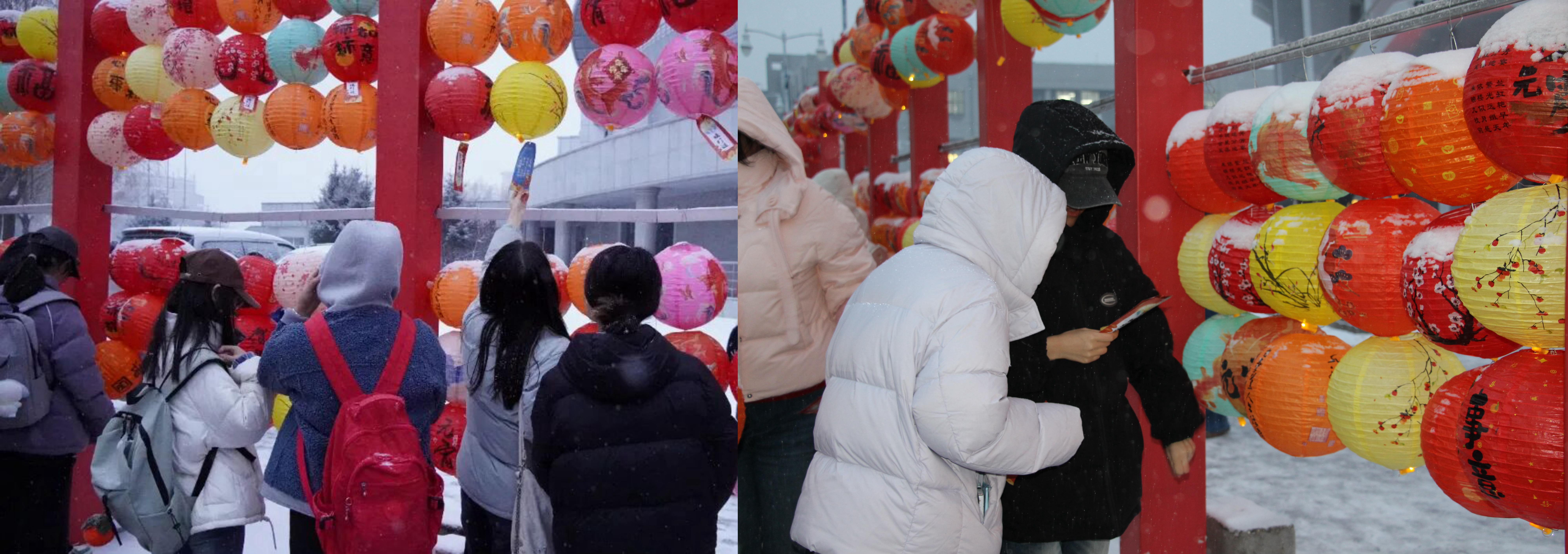 暮色初临,步行街两侧花灯亮起,各式灯谜藏于灯下,趣味谜题引来了同学们驻足,猜中谜底的同学带着卡片奔赴四号楼,解锁民俗闯关的乐趣,灯影摇曳间,满是元宵的热闹与欢喜。