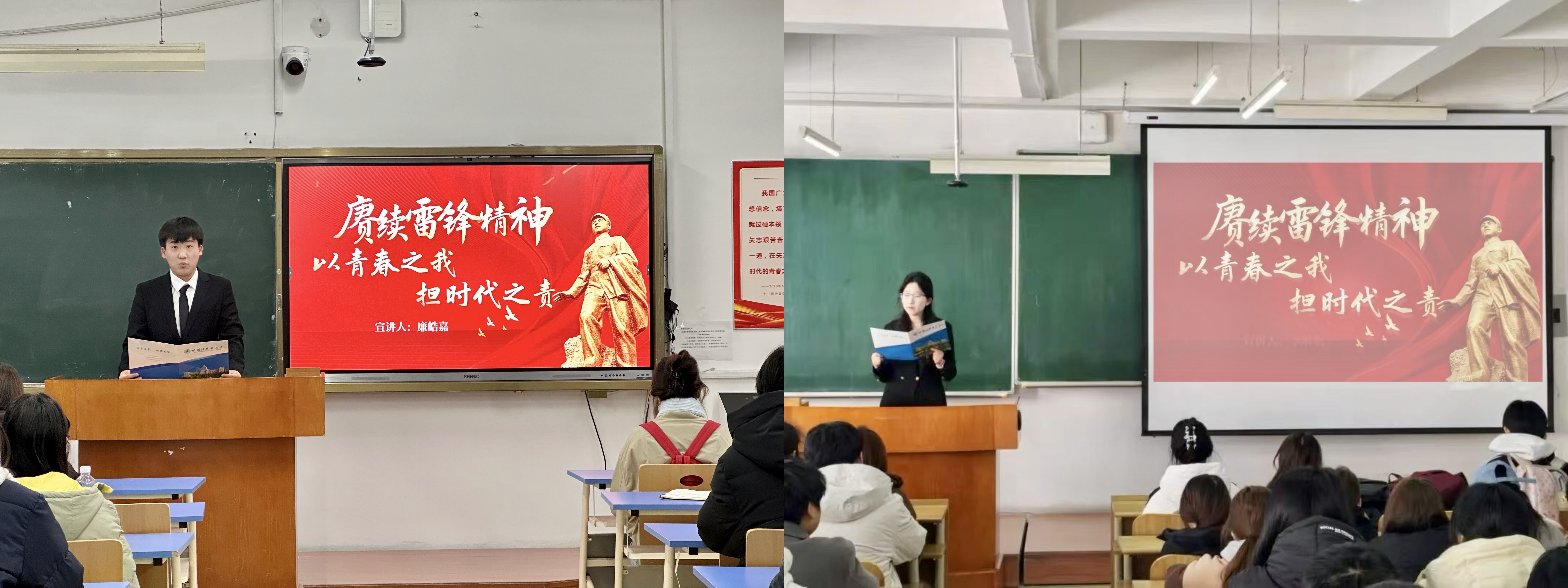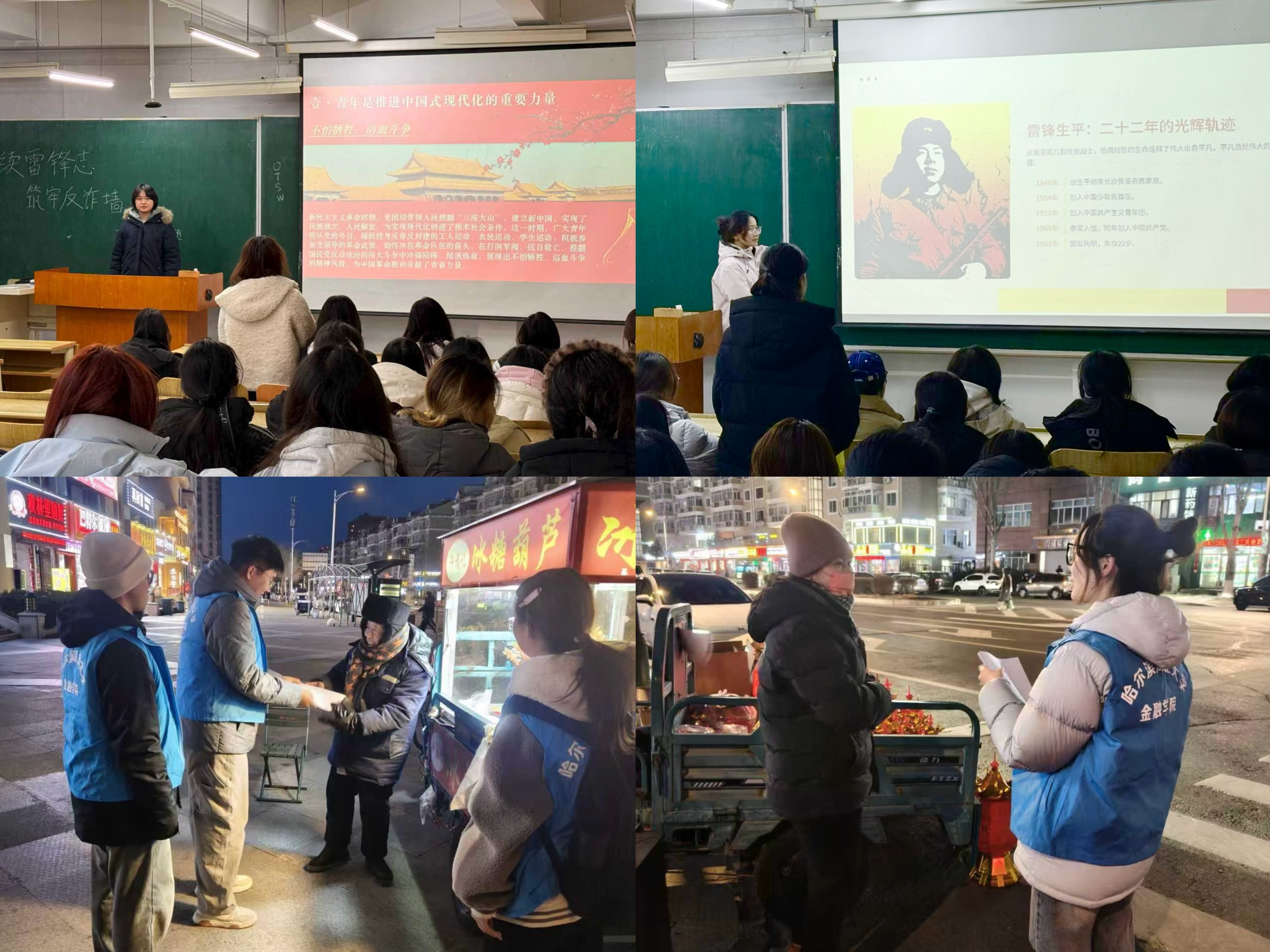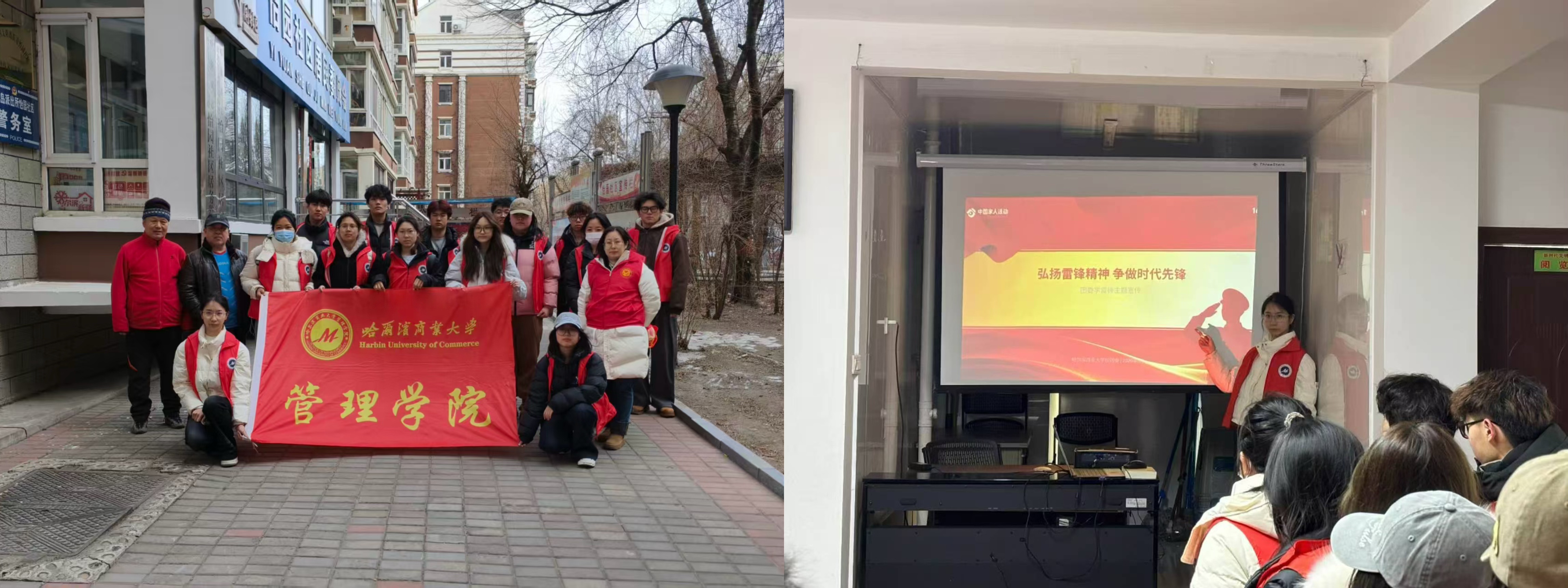 从一场跨越时空的精神对话,到遍布社区街巷的青春身影,从传递温情的笔墨画卷,到守护万家灯火的专业实践,这个三月,哈商大青年用脚步丈量责任,用行动续写《雷锋日记》的新篇章。