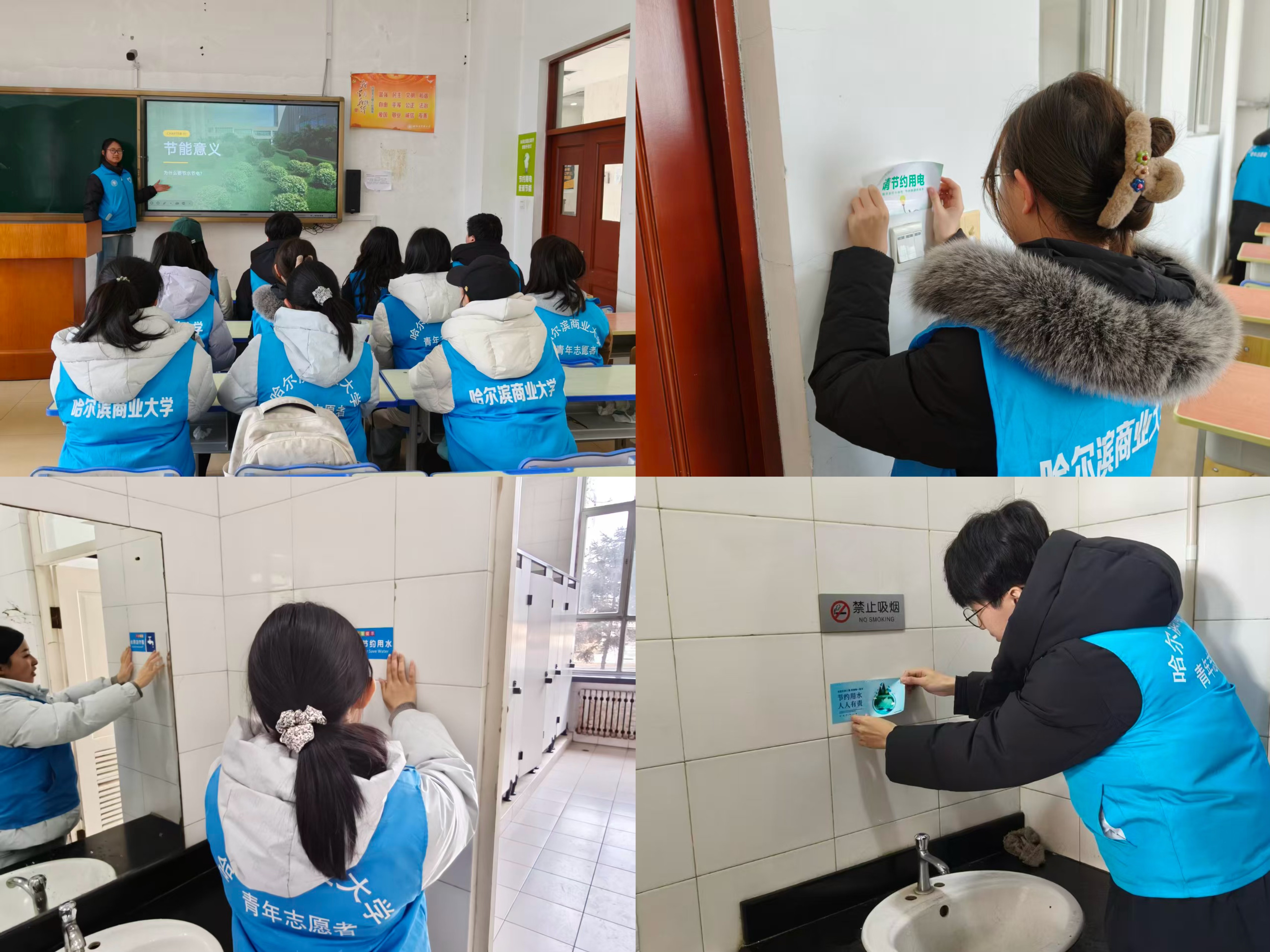 “节能有我”,绿色校园共同创建。志愿者们开展节水节电宣传与巡查,在教学楼、宿舍楼张贴温馨提示,举办专题宣讲,引导同学们从关紧水龙头、人走灯灭做起,养成勤俭节约的绿色生活习惯。