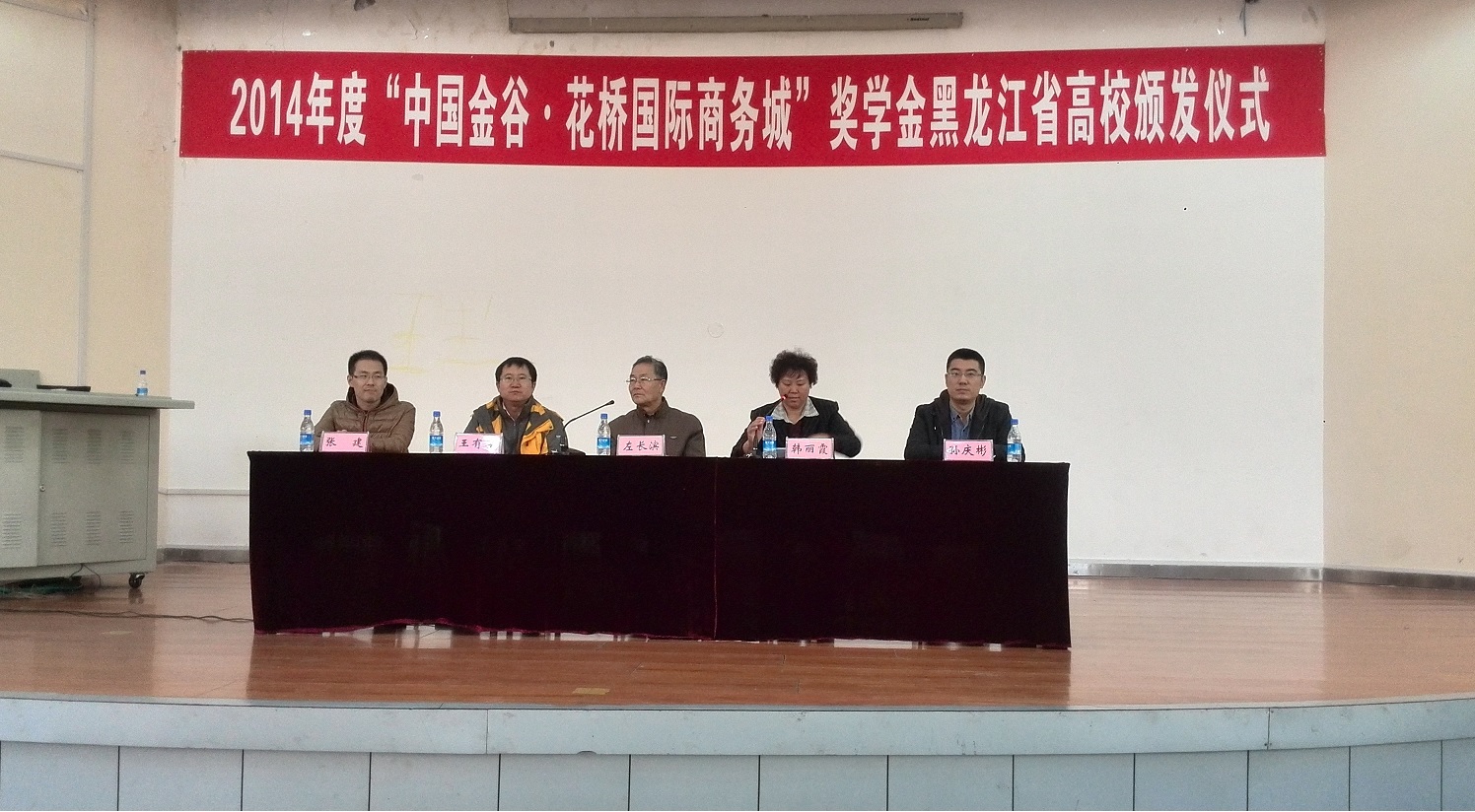 2014年度黑龙江省共有190名学生获得“中国金谷·花桥国际商务城”奖学金。我校2011级管理学院屠梦姣、杨强、邓晓琼、金融学院胡逸媛、栾悦、杨柳、马静、计算机学院魏均巍、李丹、石静10名同学分别获得“自强奖学金”荣誉称号及1000元现金奖励。