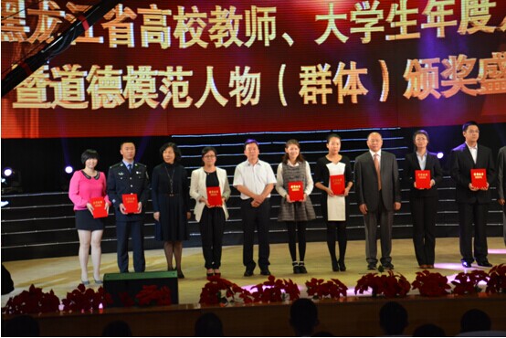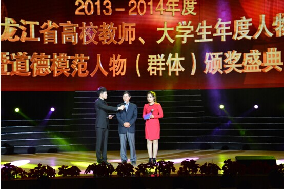 为深入贯彻落实党的十八大精神,积极培育、深入挖掘和宣传表彰我省高校中涌现出的师生先进典型,由省委宣传部、省委高校工委、省教育厅、省文明办、团省委、省电台联合举办的2013-2014年度黑龙江省高校教师、大学生年度人物暨大学生道德模范人物(群体)评选活动颁奖典礼于9月22日下午在东北农业大学音乐厅隆重举行。省委常委、宣传部长张效廉出席并为获奖者颁奖。我校党委副书记杨殿军、学生工作部部长白云龙及部分学生干部代表应邀出席了颁奖典礼。