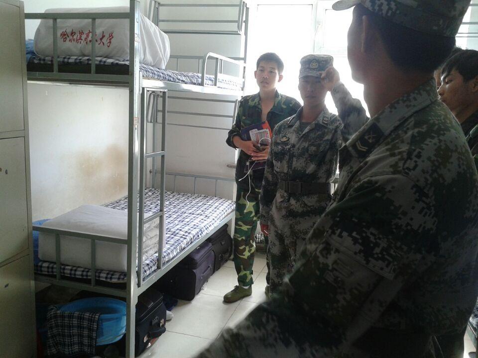 教官们在检查的时候,不仅会向同学们提出各种不同的意见,努力改正同学们内务方面的不足,还会亲自动手为同学们做示范,以达到最好的效果。教官在与同学们交流的过程中,十分耐心,亲切,自然,让人觉得教官与同学们的关系不仅仅是老师与学生的关系,更是朋友之间的关系。而且教官在示范时,动作灵活,通过几个看似简单的动作,就能将整理得棱角分明的被褥呈现在大家的面前。