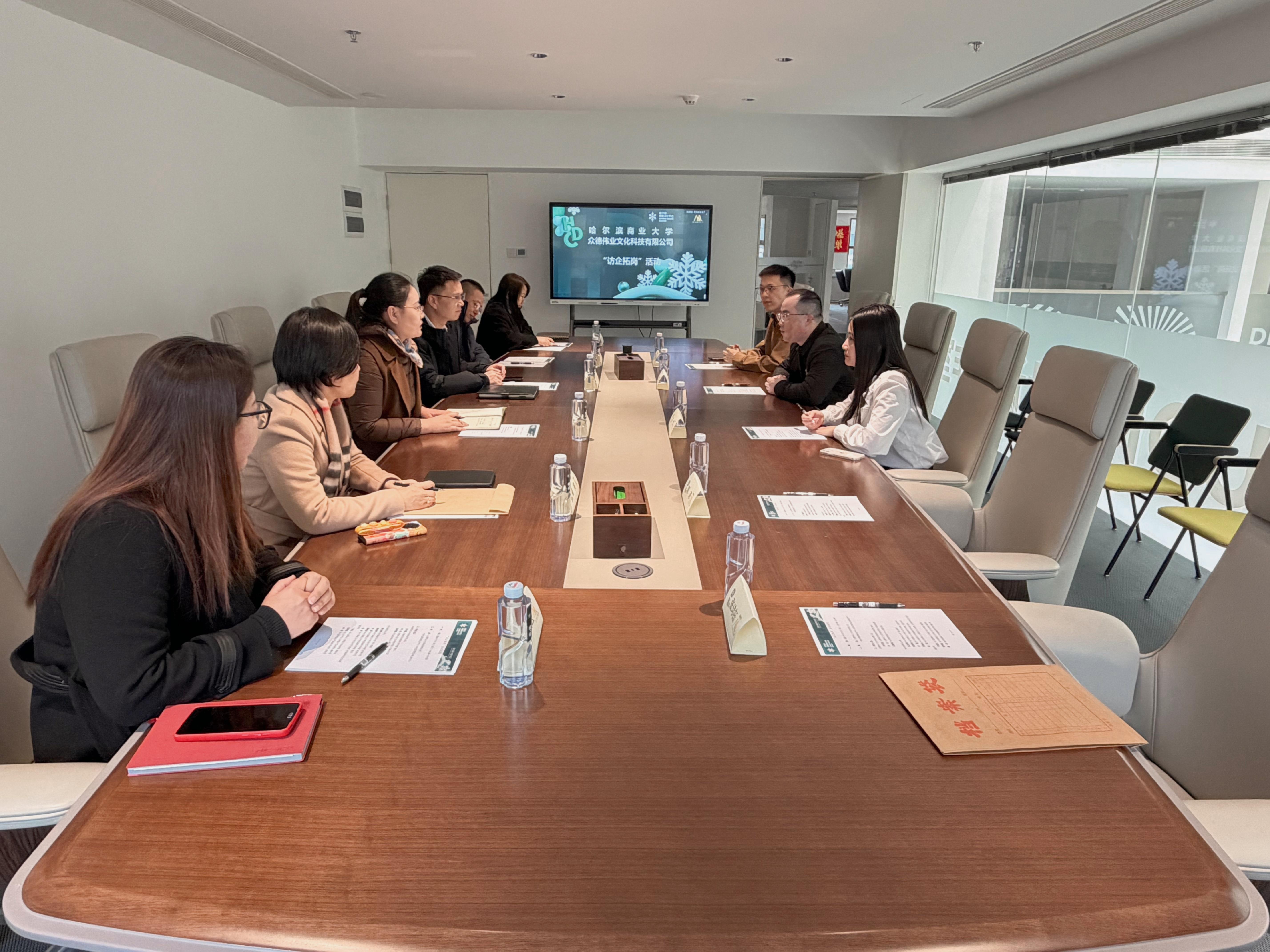 走访期间,欧忠辉一行先后深入众德伟业文化科技有限公司、哈尔滨创意设计中心、松北区美苑艺鑫文化艺术学校开展调研交流,实地了解企业发展历程、文化理念、产业布局、未来规划及人才需求等核心情况。