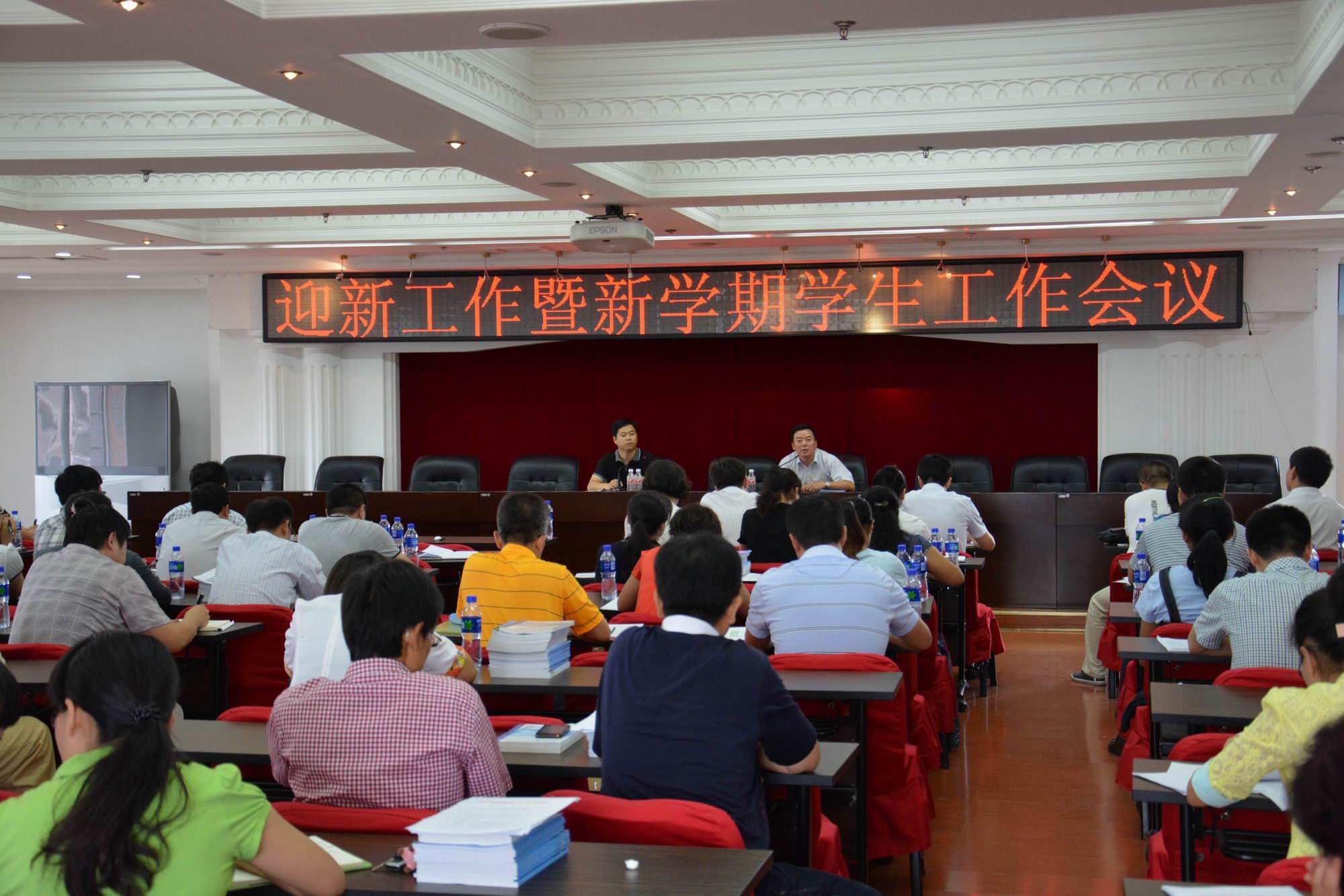 8月26日下午,我校在行政楼六楼会议室召开了2014年迎新工作协调会,学校党委杨殿军副书记出席会议并讲话,有关职能部门负责人以及各学院党总支书记、副书记、新生辅导员老师参加了会议,学生工作处冉庆国处长主持会议。