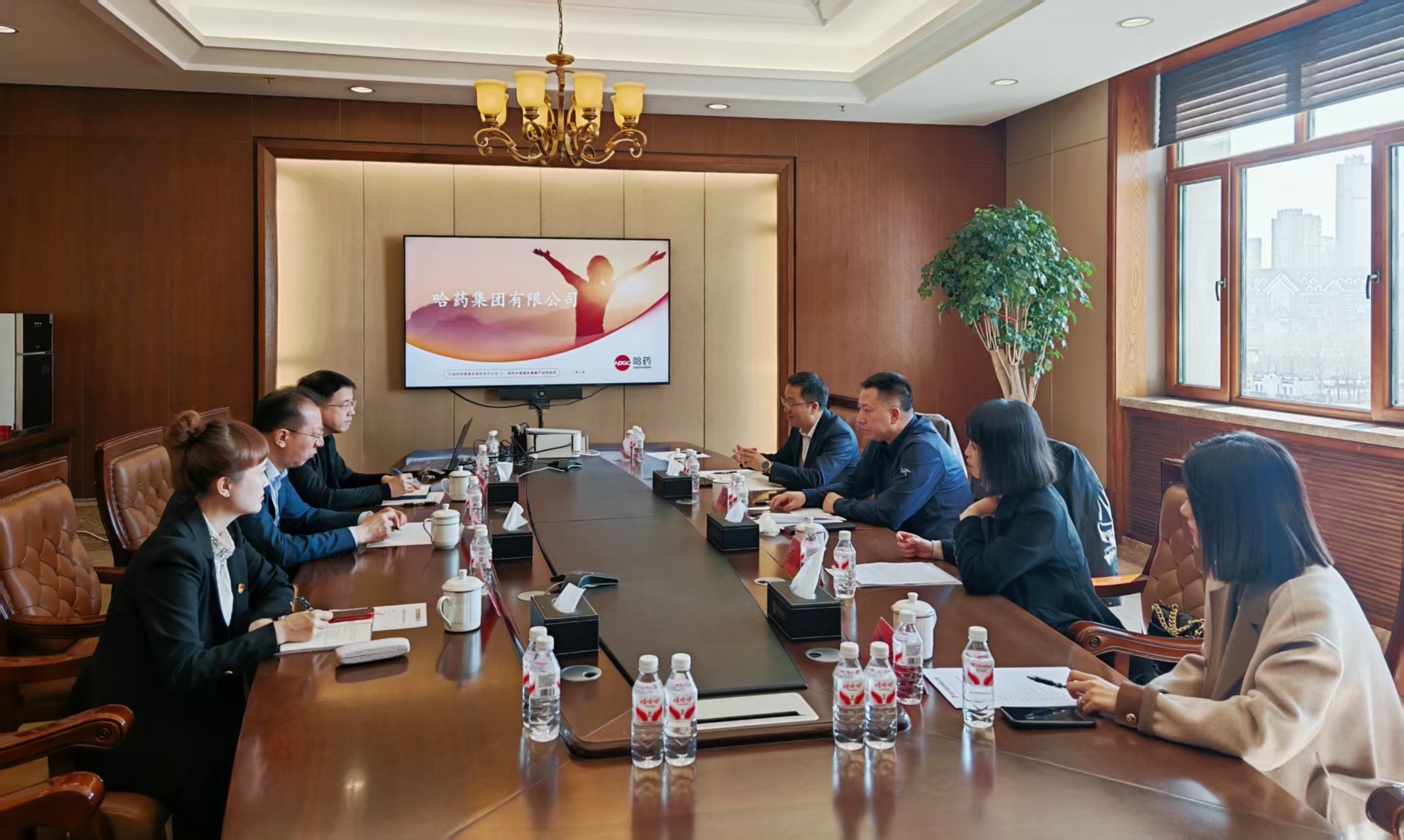 哈药集团党委委员、哈药股份总裁芦传有,哈药股份人力资源中心总经理柴安东、招聘经理闫雪莲等热情接待了学校一行。双方随后召开校企合作座谈会,围绕优质岗位精准对接、实习实训基地建设、未来人才培养方向等议题进行了深入交流。
