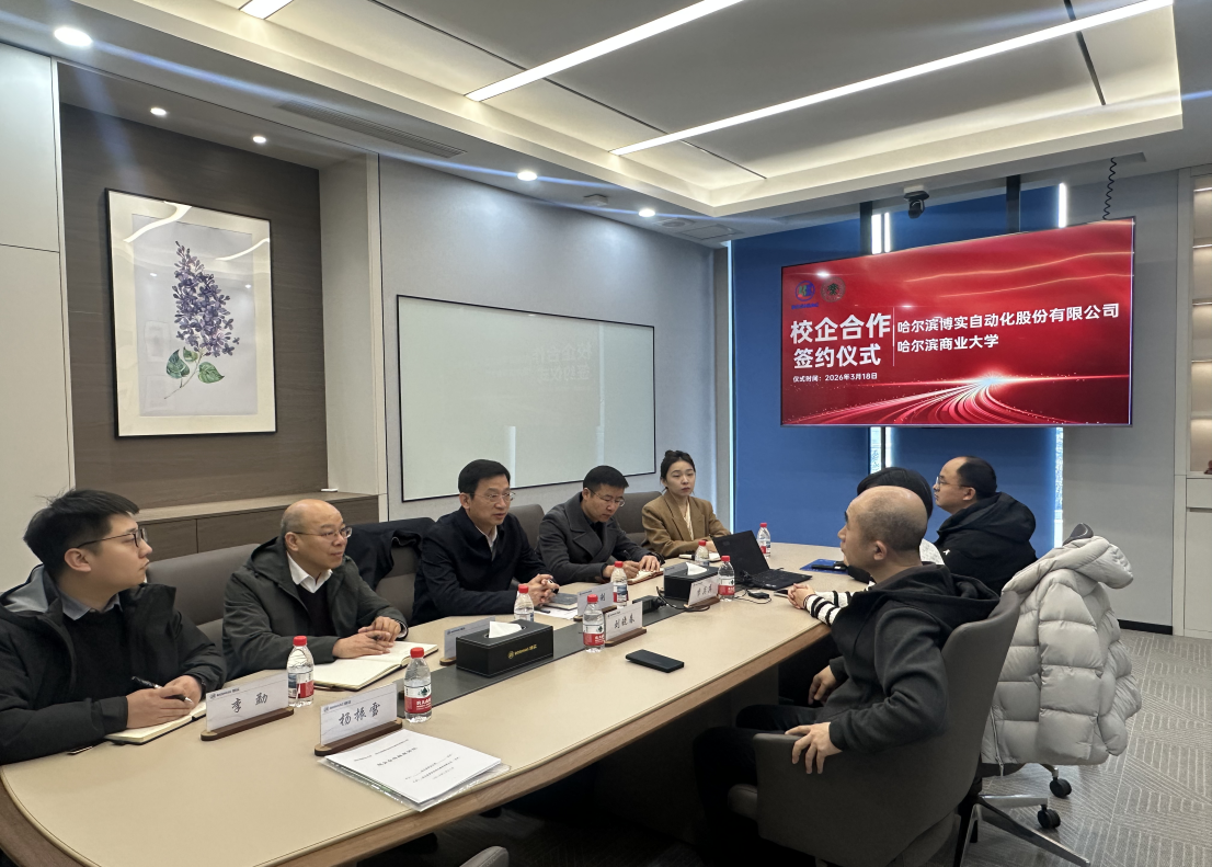 哈尔滨博实自动化股份有限公司行政总监刘晓春、人力资源部部长李真真、招聘主管杨震雪及技术研发部门相关负责人热情接待寇胜利一行。在企业陪同下,学校一行首站前往企业展厅,详细听取公司发展情况介绍,深入了解企业创建历程、行业地位、核心产品及市场布局。作为从哈尔滨工业大学走出的高新技术上市公司,博实股份专业从事智能制造装备及工业机器人研发、生产、销售与服务,其产品广泛应用于化工、冶炼、物流、食品等多个领域,覆盖国内所有省区并出口多国,展现了强劲的行业竞争力与技术创新实力。