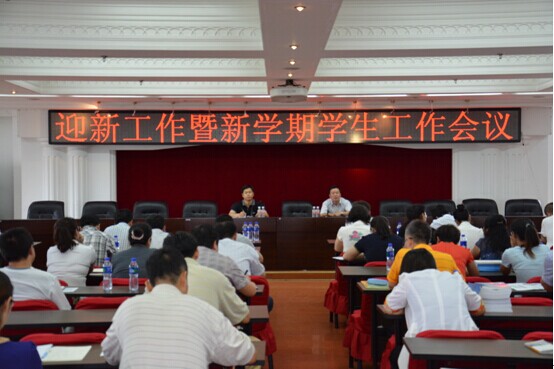 为将新学期学生工作做得更好,我校于8月26日下午在A区行政楼六楼大会议室召开了迎新工作暨新学期学生工作会议。参加会议的有校党委副书记杨殿军、校学生工作各职能部门副处级以上(含副处级)干部和各学院党总支书记、副书记、副处级辅导员、新生辅导员和与迎新工作密切相关的职能部门领导。