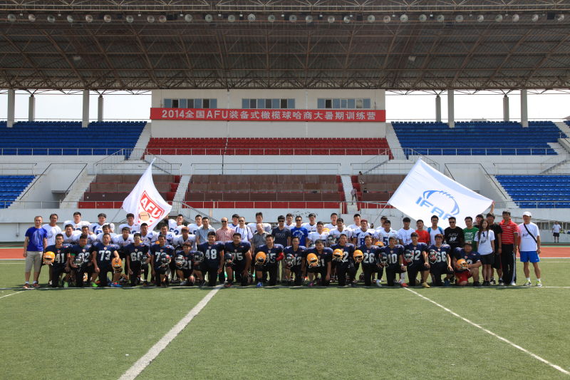为促进装备式橄榄球运动的开展,增强学生身体素质,加强东三省高校装备式橄榄球队之间的交流,2014年全国AFU装备式橄榄球哈商大暑期训练营于7月24日——8月8日在我校体育学院举行,共有来自东北师范大学、吉林大学、河北工业大学、东北大学、哈尔滨体育学院、哈尔滨商业大学六所高校16名橄榄球教练员和48名学生球员参加此次训练营。