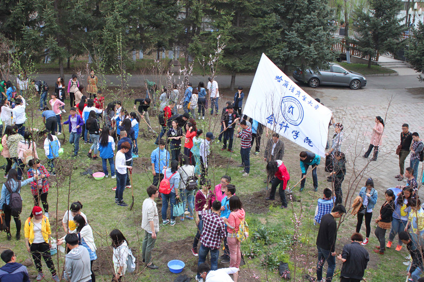 4月25日下午,会计学院组织学生开展植树活动,在B区食堂南侧新建“桃李园”,为绿色校园建设开辟了学生植树添绿的先河,增强了师生爱绿、护绿、建绿意识,为绿色校园活动营造了良好氛围。