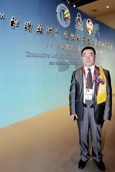 2014年5月19日,在亚洲相互协作与信任措施会议(简称亚信会议)第四次峰会召开期间,由北京和平之旅文化交流中心和中国对外文化交流协会联合主办的“和谐亚洲”国际和平艺术家绘画作品展在上海中华艺术宫隆重举行。我校设计艺术学院院长王宝成教授应邀参加展览,并荣获组委会颁发的“国际和平艺术家”荣誉称号。