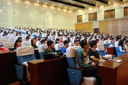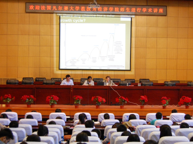 为推进经济学院国际化教育水平,5月28日上午,经济学院邀请法国凡尔赛大学经济学教授Dr. Patrick SCHEMBRI和Dr. Katia RADJA为经济学院师生进行了两场题为“绿色经济与可持续发展“的学术讲座。经济学院面向全校举办的此次学术讲座,受到了中法教育交流协会的支持和协助,隶属于法国教育部的中法教育协会会长任树磊先生也亲自来到会场并致词。任树磊会长对经济学院在中法建交50周年之际举办中法学术交流活动给予了高度评价,并希望经济学院能依托学院学科特色和优势,进一步加强与法国各类高校和学术机构的交流和沟通,为中法教育事业的发展做出更大贡献。讲座之前,经济学院院长项义军教授、书记韩平教授等与任树磊会长、Dr. Patrick SCHEMBRI和Dr. Katia RADJA进行了中法教育交流合作座谈,并对经济学院与中法教育交流协会的未来合作进行了意见交流。随后,共计400余名师生在国际学术报告厅听取了Dr. Patrick和Dr. Katia的英文学术讲座,会场气氛生动热烈,经济学院师生与两位法国教授的学术互动体现出了经济学院目前的学科建设层次和学生培养水平。