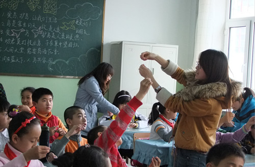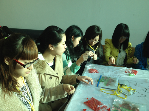 到学校教授孩子们珠绣制作方法