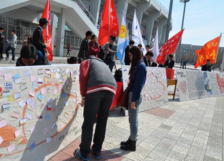 祝福汇聚成“爱心墙”