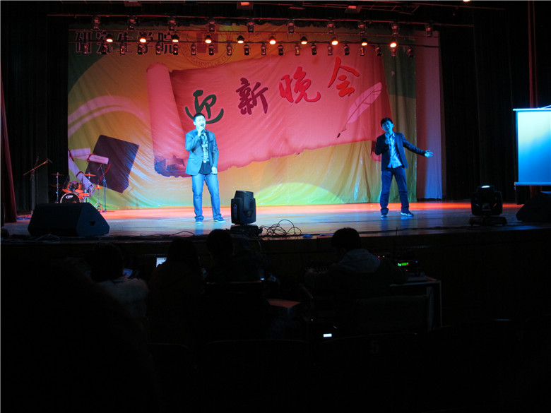 研究生会主席姜伟毅和副主席柴玉冰倾情演唱