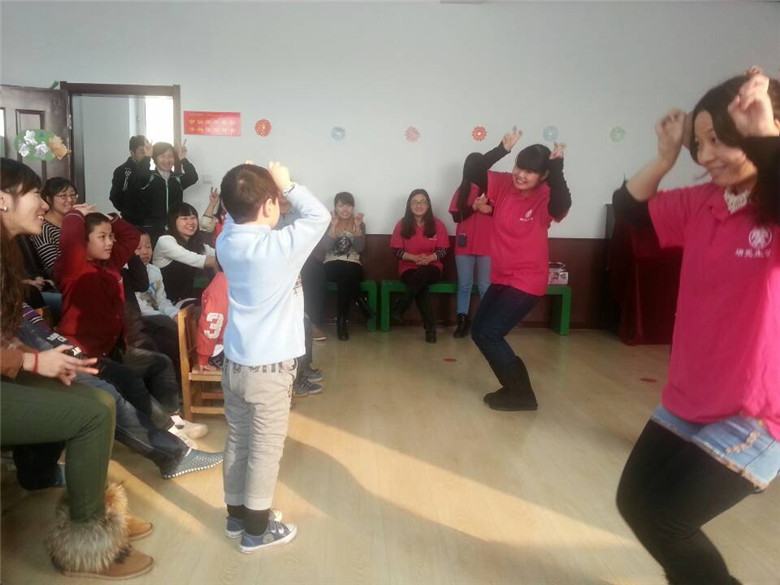 志愿者在香坊区启迪学校自闭症儿童校区