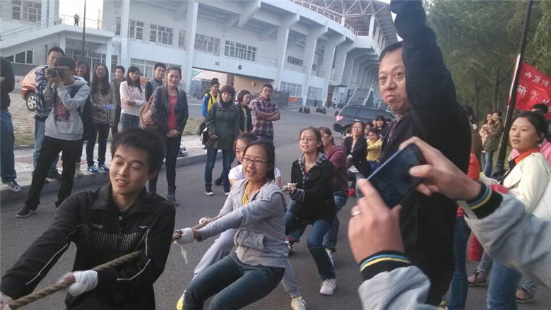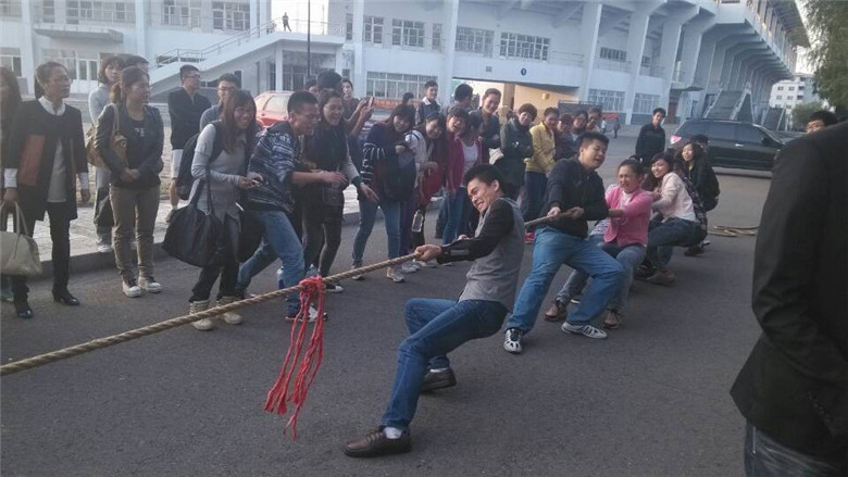 2013年9月27日,2013级入学一个月,研究生会在北校区举办了研究生学院首届拔河比赛,各专业根据招生规模以及女队员占多数的情况,按照男女队员1:2的格局,组建了独立代表队或联合团队,以淘汰制晋级形式展开赛事。比赛过程中,各个团队发扬了团结协作精神,场场比赛都精彩纷呈,扣人心弦。为数尽管不多的男同学争先恐后,女同学更是不甘示弱,场外啦啦队员的加油呐喊声回响在整个赛场,比赛期间的队员表情丰富多姿,让观众忍俊不禁。最后,管理学院代表队荣获冠军,计算机学院与会计学院专业硕士代表队分别荣获亚军和季军。尤其令研究生同学们高兴的是,研究生学院陶萍、赵大伟、杜惠珠,计算机与信息工程学院行政秘书姜海涛四位老师前往助阵,姜海涛老师还亲自编排阵容,指挥十几名女同学和三名男同学组成的代表队,使计算机代表队“以女胜男”,经过几轮比拼,最终荣获亚军。参赛队员说,拔河比赛是体育项目中最能体现“团结就是力量”协作精神的活动——一条长绳把整个团队紧紧连接在一起,哨响为令,鼎力合作,展现出强烈的团队意识和集体荣誉感,每个队员都在为共同目标坚持不懈,忘我拼搏,今后要以这种团结协作与竞争拼搏精神投入学习、科研、生活和工作,众志成城,攻坚克难。