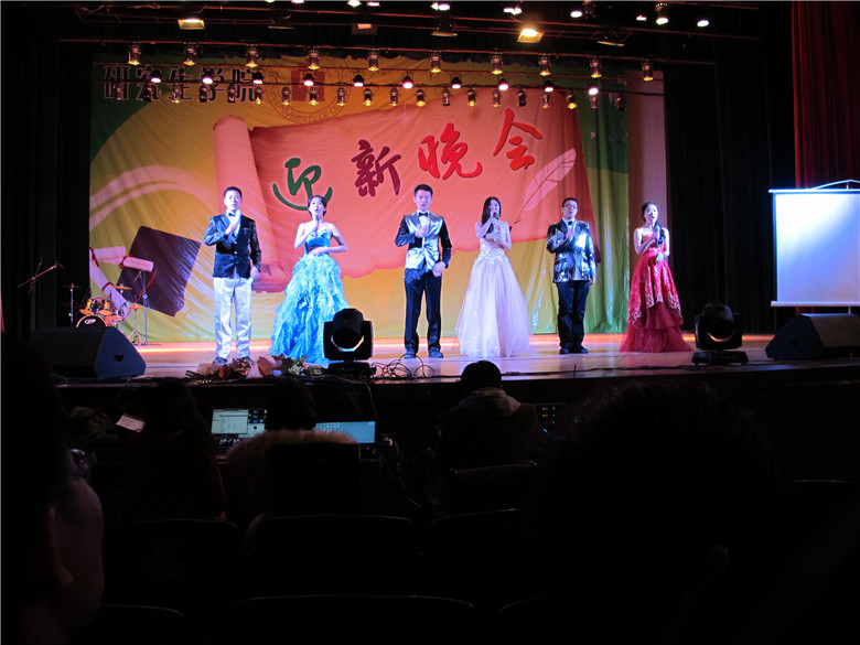 2013年11月7日晚,在B区大礼堂举行了“第四届研究生学院迎新生晚会”。我校研究生会各个部门通力合作,精心编排,节目内容丰富多彩,歌曲、舞蹈、相声、话剧、魔术、时装秀等不同体裁使整台晚会轻松欢快、精彩热烈。晚会自新生入学后开始精心准备,“发现”演员、征集节目,研究生会进行严谨周密的策划。迎新晚会同时开通了微博互动,每个节目都赢得热烈掌声,王巍和宁虹超两位老师的倾情演唱《兄弟》迎来满场喝彩,相声话剧让人捧腹不禁,吉他弹唱和架子鼓演奏让观众感受到音乐的魅力,精心编排的舞蹈和神奇的魔术表演更让观众眼前一亮,合唱节目更使同学们体会到团结协作的力量。迎新晚会让新同学感受到研究生生活的快乐,丰富了同学们的文化生活,也促进了同学们之间的交流,增强了各专业之间的凝聚力,为今后开展各项工作打下基础。晚会受到演员和观众的一致好评。