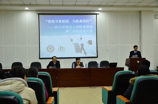 12月4日下午,“哈尔滨商业大学经典阅读推广活动启动大会”在图书馆报告厅隆重召开。经典阅读推广活动是在曲校长的大力倡导下,张志军副校长亲自领导下,在学校有关部门、图书馆和各学院老师的积极配合和支持下举行的。开展经典阅读推广活动,目的就是通过为读者提供经典阅读交流和讨论平台——“经典阅读沙龙”,引导读者阅读国内外的经典著作,提升师生阅读品味,激发读书兴趣,营造良好的读书风气,让读者从经典中品读人生,品读智慧,品读社会;完善知识结构,为读者个性发展积淀深厚的文化内涵、学养和胸襟,培养读者形成“爱读书,读好书,善读书”的学习型人生理念,促进人的全面发展;“与好书为伴,与经典同行”,营造“书香校园”。